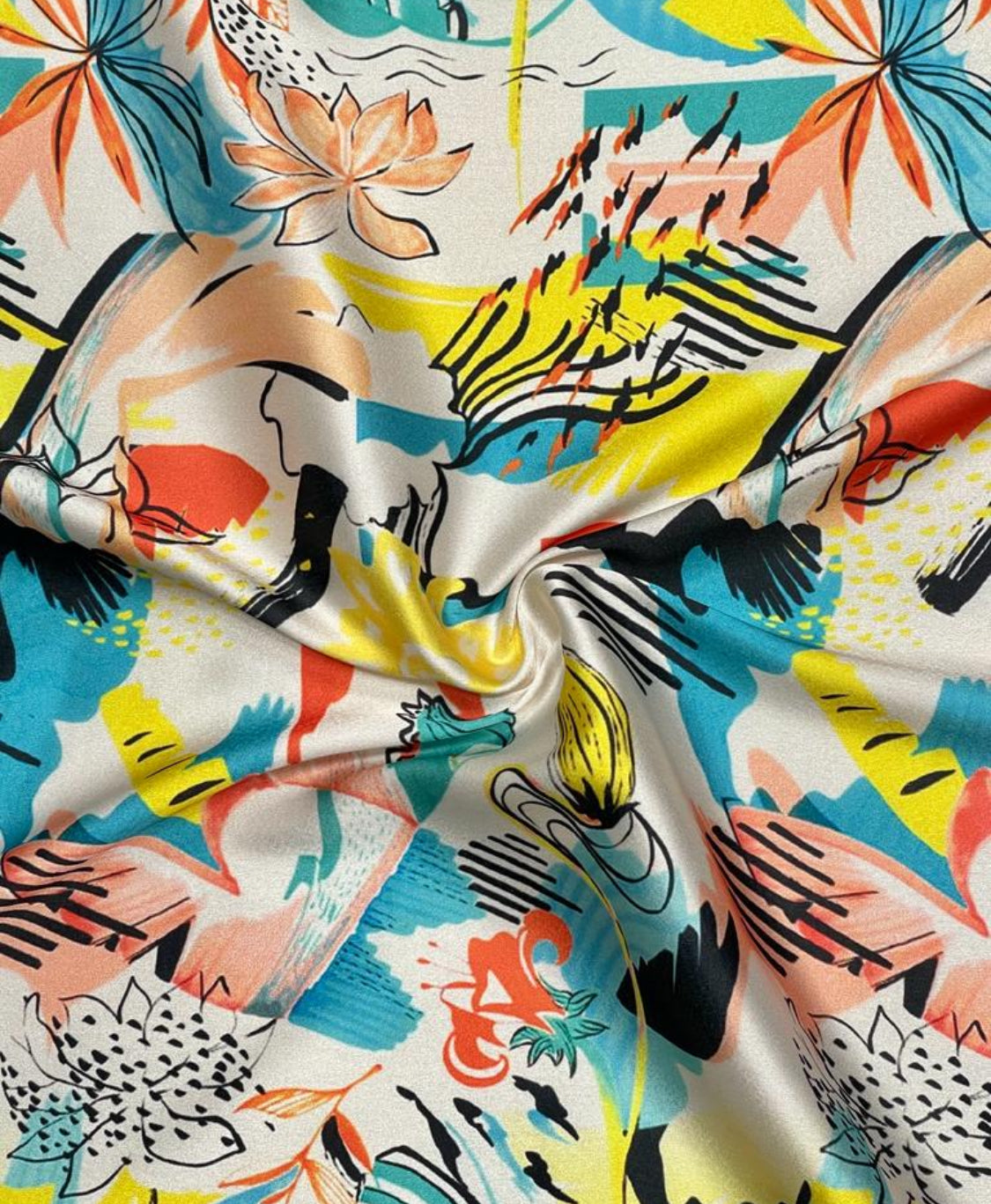 - Blouse: Coordinated satin blouse to complement the print seamlessly