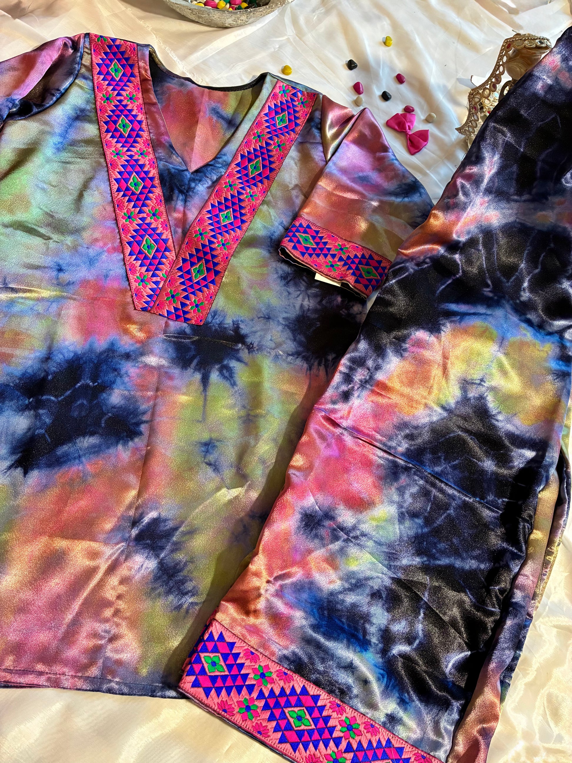 - Fabric: Premium imported Dubai satin with a lustrous ombre finish, offering a soft, silky feel and a smooth, fluid drape.