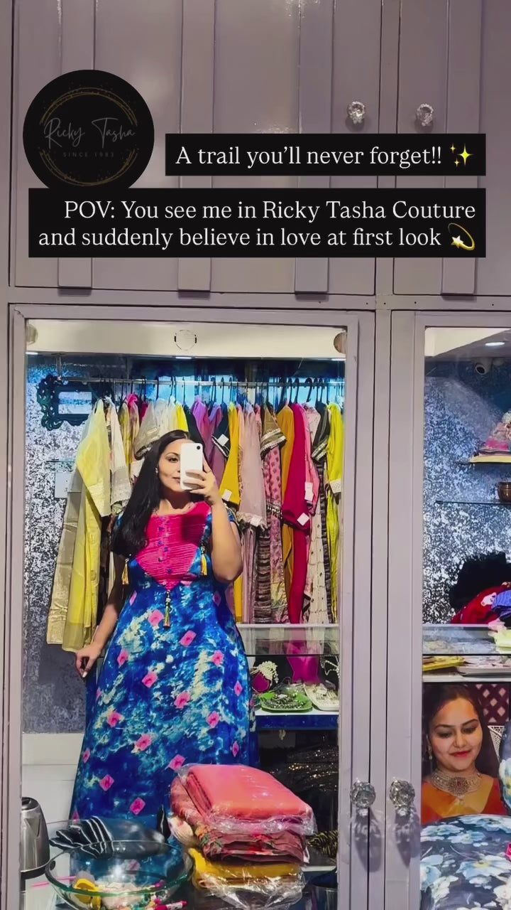 - Design Details: Pin-tuck V-neck gown with fitted bodice, front button and dangler detailing, and exaggerated trail for added drama.