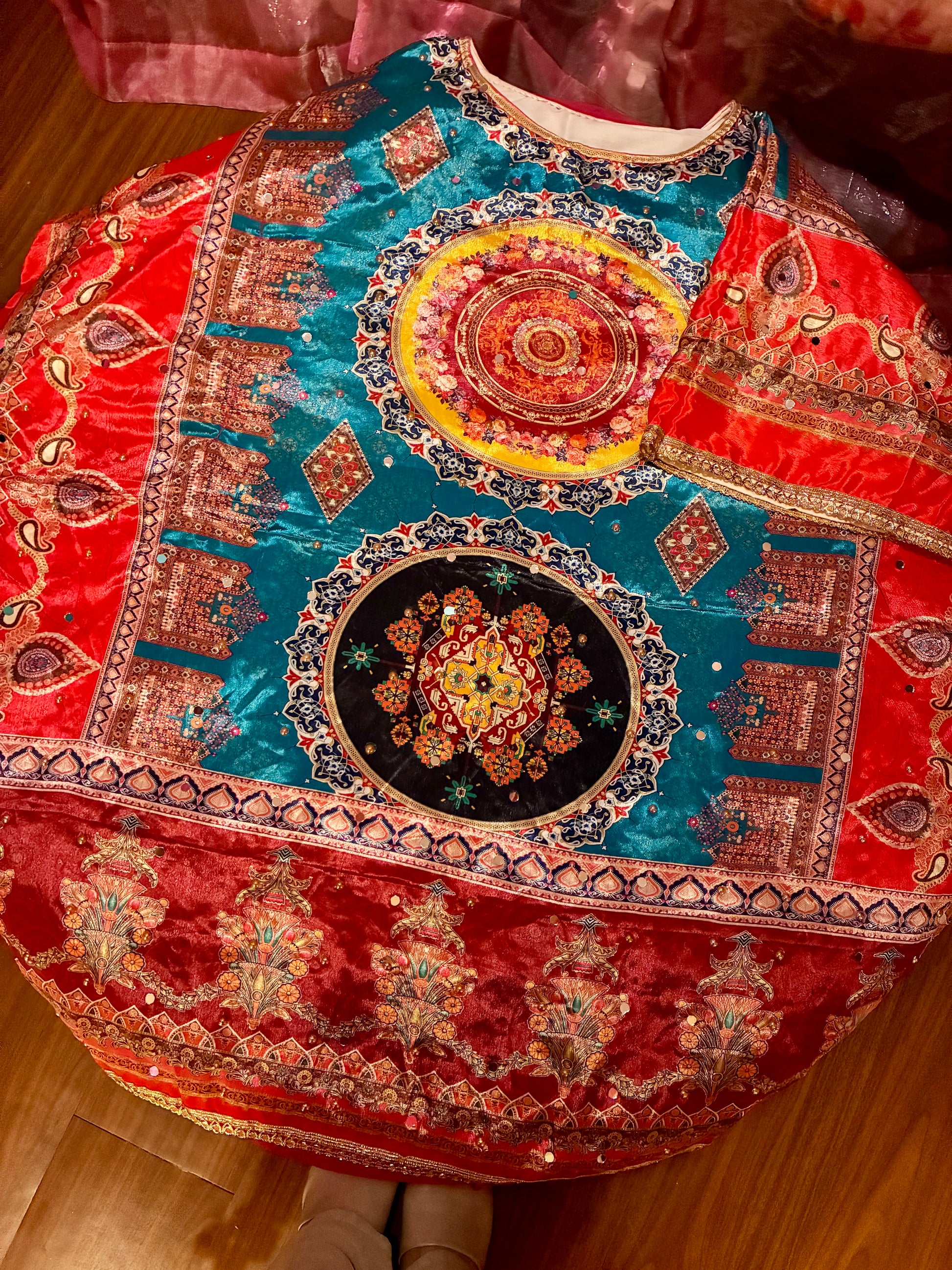 • ✨ Detailing: Delicate Lace Trim on Edges and Mirror Work all over